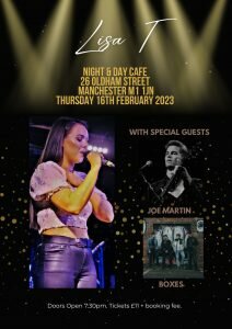 The headline gig will be the start of the next step for Lisa, who will be performing with her brand new band – it’s sure to be a brilliant night in Manchester. With a line up of Lisa T, Boxes and Joe Martin, it is quality all the way. Three artists who are sure to make a massive impact on the scene.